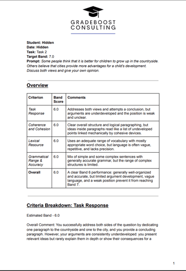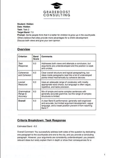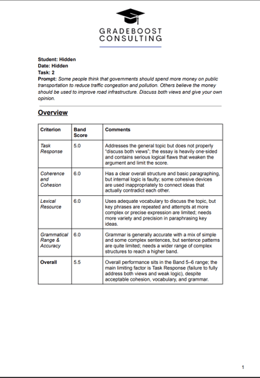 Our expert team has taken the effort to provide you with the most accurate and constructive feedback, so don't ignore it! Take the time to read the feedback we've given you and really reflect on your work. Implement and improve, that's the Gradeboost way!